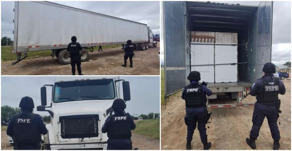 Los integrantes de la FSPE aseguraron un tractocamión color blanco marca Volvo, modelo 2013, acoplado a semirremolque tipo caja seca, con aproximadamente 28 toneladas de electrodomésticos, cuyo valor se estima en 10 millones de pesos que eran trasladados de Cuautitlán Izcalli, Estado de México con destino a Nuevo Laredo, Tamaulipas. Así como otro tractocamión y un dispositivo electrónico tipo inhibidor de señal.