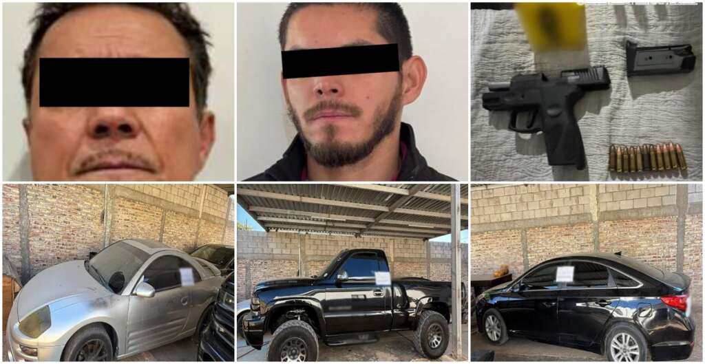 Sonora, Son., 10 de noviembre del 2025. Como parte de los trabajos de investigación e inteligencia que se desarrollan en el estado de Sonora para detener a generadores de violencia, elementos de la Secretaría de Seguridad y Protección Ciudadana (SSPC), Secretaría de la Defensa Nacional (Defensa), Secretaría de Marina (Semar), Fiscalía General de la República (FGR) y Guardia Nacional (GN), ejecutaron dos órdenes de cateo y detuvieron a dos integrantes de una célula delictiva relacionada con el tráfico de armas, drogas, cartuchos y divisas hacia los Estados Unidos.
