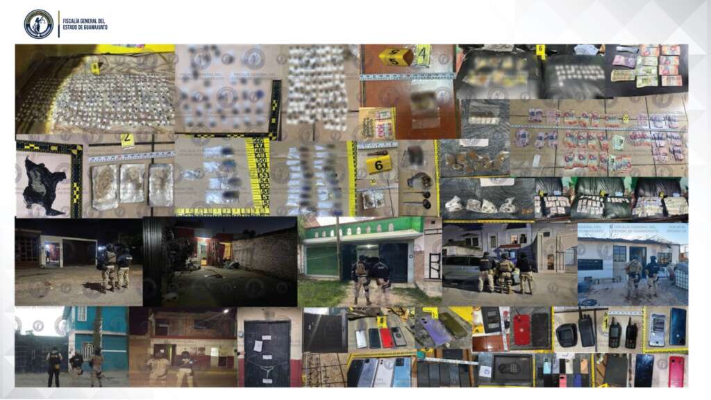 Irapuato / Silao, Gto., 13 de Noviembre del 2025.- La Fiscalía General del Estado de Guanajuato, a través de la Fiscalía Especializada en la Investigación de Delitos de Alto Impacto, ejecutó una serie de operativos simultáneos en los municipios de Irapuato y Silao, resultado de un trabajo de investigación e inteligencia que permitió la detención de 22 personas, entre ellas cuatro mujeres.