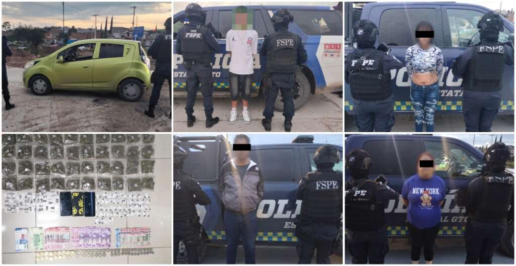 Las personas detenidas fueron identificadas como Diego “N” (19 años), Antonia “N” (42 años), Florjared “N” (20 años) y Jorge “N” (36 años), con domicilio en las colonias Joyas de Castilla y Parque La Noria, en León.