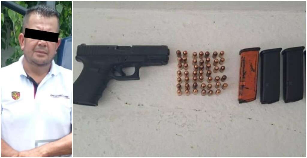 Oficiales del sector fueron notificados y realizaron un recorrido de localización. Cerca del estacionamiento se encontró a un hombre que coincidía con la descripción proporcionada. A simple vista se observó lo que parecía un arma de fuego; al realizarle una revisión, se confirmó que portaba un arma corta tipo escuadra.