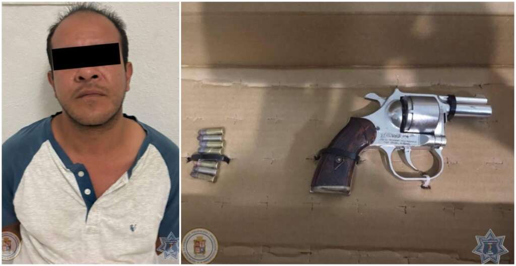 Conforme a los protocolos de seguridad, se le realizó una inspección, encontrándole un arma de fuego corta calibre .22 mm, un cargador y ocho cartuchos útiles.