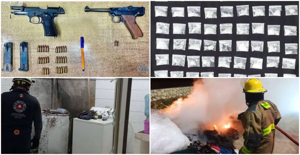 Mediante patrullajes estratégicos y acciones de proximidad social, se aseguraron 1 mil 231 dosis de droga: 623 de marihuana, 597 de cristal, 7 de cocaína y piedra base, así como 4 psicotrópicos.