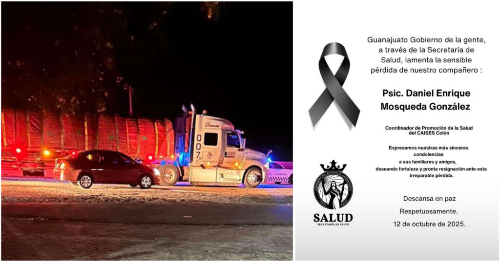 Irapuato, Gto., 12 de Octubre del 2025.- Dos personas perdieron la vida la madrugada de este domingo en un accidente registrado sobre la carretera federal Irapuato–Abasolo, a la altura de la comunidad de Mogotes. Entre las víctimas se encuentra Daniel Enrique Mosqueda González, coordinador de Promoción de la Salud del Centro de Salud Colón de Irapuato.