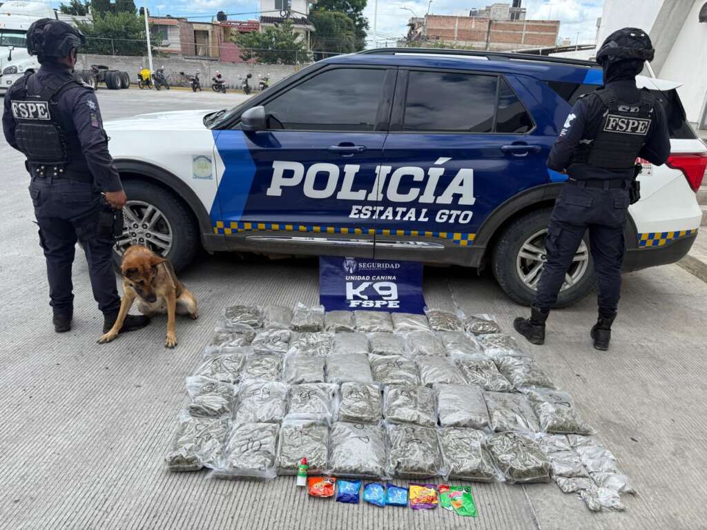 León, Gto., 17 de septiembre de 2025.- La Secretaría de Seguridad y Paz del Estado de Guanajuato, a través de la Unidad Canina K9 de las Fuerzas de Seguridad Pública del Estado (FSPE), frustró un intento de envío de drogas que pretendía realizarse mediante una empresa de paquetería en el municipio de León.