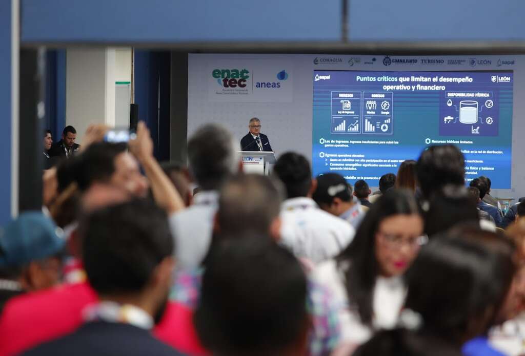 León, Gto, 25 de noviembre del 2025. En el marco de la Expo y Convención de Asociación Nacional de Entidades de Agua y Saneamiento de México, (ANEAS) inició el encuentro Nacional de Áreas Técnicas y Comerciales (ENATEC) en donde el Sistema de Agua Potable y Alcantarillado de León, destacó la eficiencia y el ahorro de 155 litros de agua por segundo.