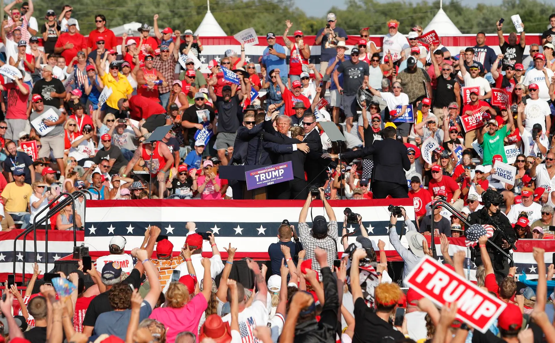 Ese momento supuso un punto de inflexión en la campaña presidencial y la foto de Trump con el puño en alto en señal de victoria se ha convertido en una imagen que glorifica su figura.