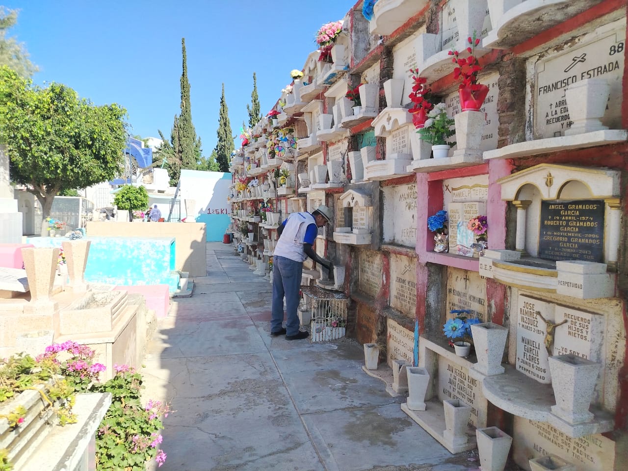 En las visitas de verificación sanitaria a los panteones se corroboran las condiciones de limpieza y orden, la adecuada disposición de residuos sólidos, la limpieza de los recipientes donde se almacena agua, así como el control de fauna nociva.